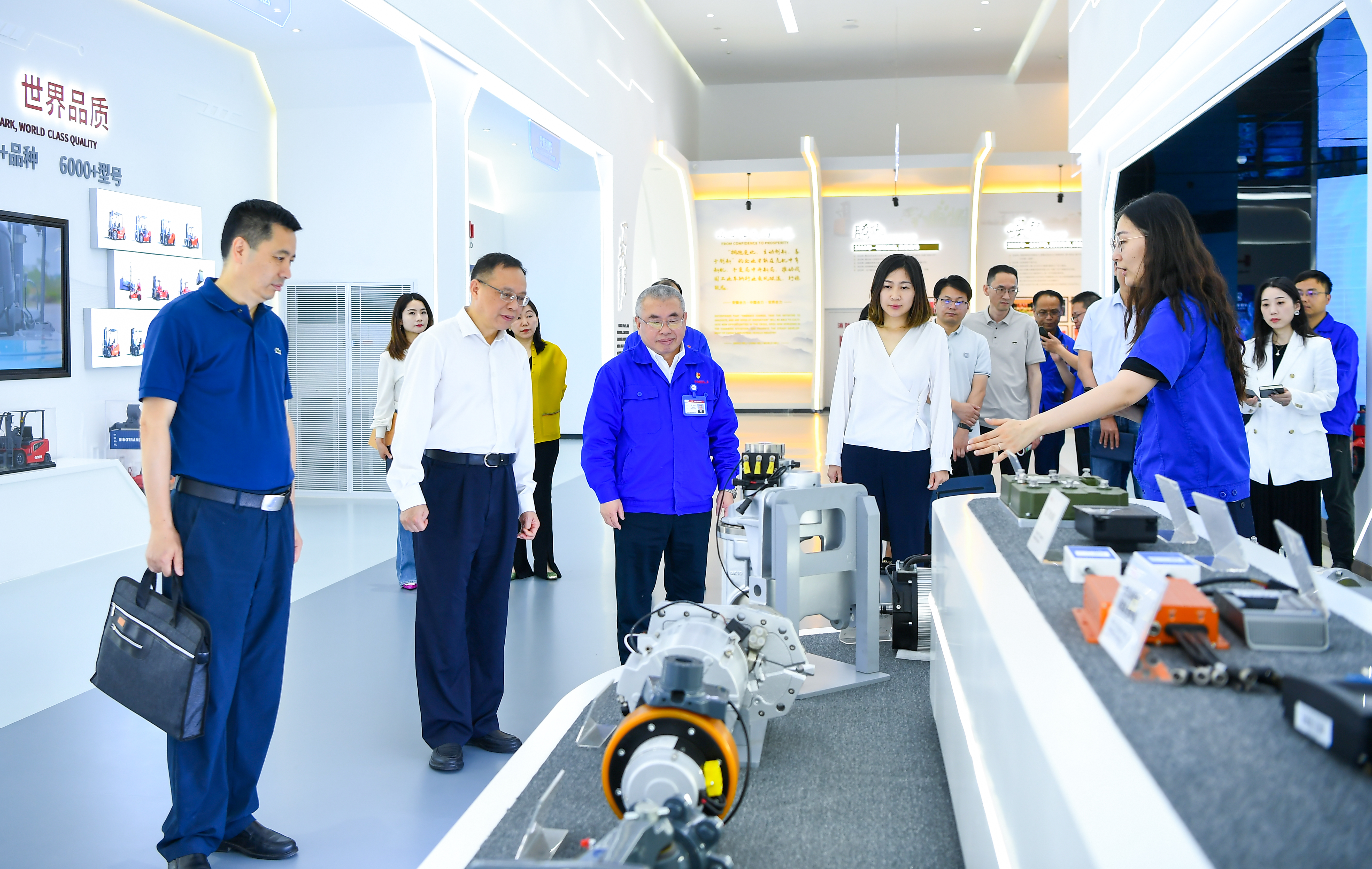 章理中一行首先旅行了协力数字化展厅。。。。据先容,,,,,安徽叉车集团是安徽省属全资国有企业,,,,,始建于1958年,,,,,至今已有66年的生长历程,,,,,是国家立异型企业、国家火炬妄想重点高新手艺企业、安徽省工程机械建设(合肥)基地龙头企业。。。。其主营营业有工业车辆、智能运搬装备、智能物流系统及焦点零部件等。。。。阻止现在,,,,,企业主要经济指标一连33年天下偕行业前线,,,,,并于2016年跻身天下工业车辆行业七强。。。。